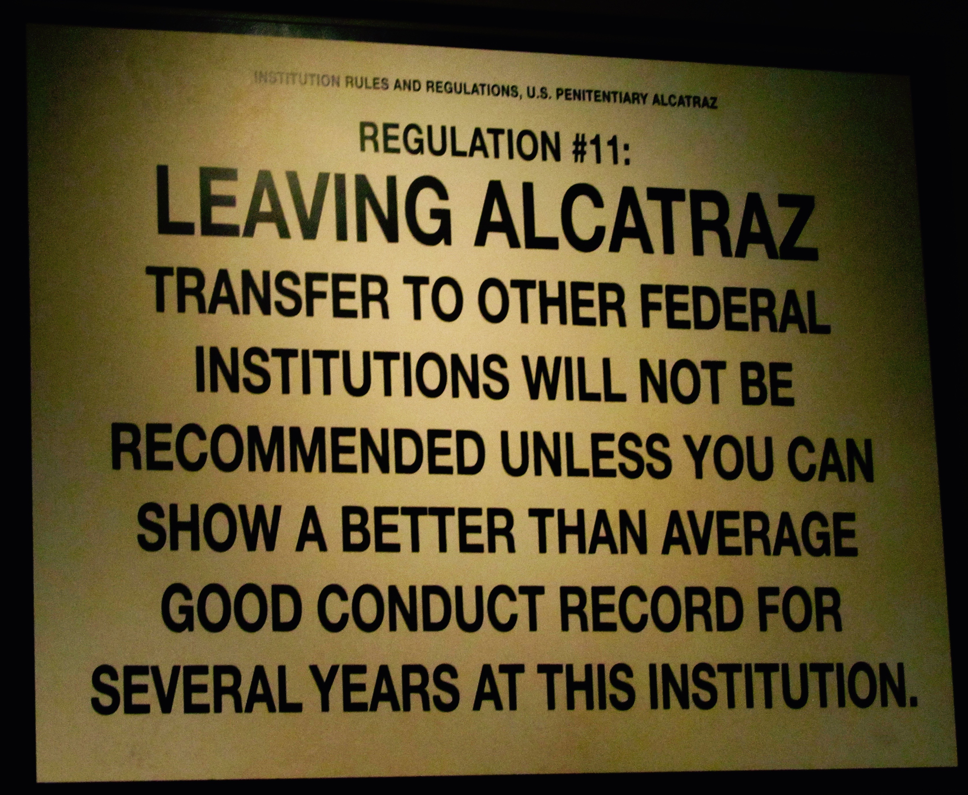 Among the signs that greet you upon entering Alcatraz Penitentiary is the following: